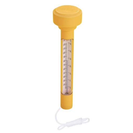 Termometr pływający to praktyczny dodatek do każdego rodzaju basenu. Wykonany jest z bardzo solidnego i mocnego tworzywa sztucznego odpornego na chlor, korozję i promienie UV. Posiada sznurek dzięki któremu możesz przywiązać go do drabinki, skimmera lub brzegu basenu. Pływający termometr do basenu ogrodowego pozwoli szybko określić jaka temperatura wody panuje w zbiorniku. Swobodnie unosząc się na powierzchni, wskazuje otrzymane wyniki, zarówno w stopniach Celsjusza, jak i Fahrenheita. To praktyczny dodatek, który ułatwi korzystanie z Twojego basenu. Jest wodoszczelny a odpowiednia konstrukcja zapewnia pływalność w pionie. Bezpieczny dla dzieci - brak elementów szklanych.