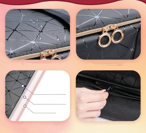 Doskonałe wykonanie z wysokiej jakości materiałów: Rozsądne wymiary: 28 cm x 24 cm x 36 cm. Organizer na lakiery do paznokci charakteryzuje się klasycznym geometrycznym wzorem, który nadaje mu stylowy wygląd. Zewnętrzna część organizera jest wykonana ze skóry PU, która jest wodoodporna i łatwa do czyszczenia. Wnętrze torby na lakiery do paznokci ma bawełniane wyściółki, które chronią narzędzia do manicure.