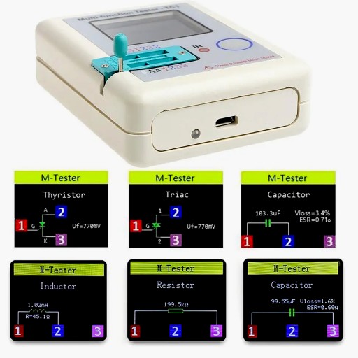 LCR-T7 to kompaktowy i łatwy w użyciu tester elementów elektronicznych, który umożliwia testowanie tranzystorów, cewek, diód i kondensatorów. Jest to idealne narzędzie dla hobbystów, elektroników i studentów, którzy chcą szybko i precyzyjnie diagnozować problemy z układem elektronicznym.