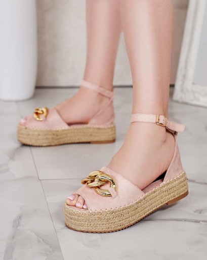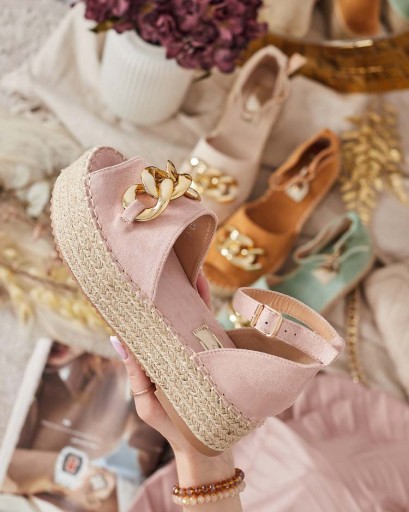 Wyjątkowe damskie espadryle wykonane z eko skóry zamszowej. Płaska podeszwa zdobiona sznurkiem jutowym zapewnia wygodę. Model zapinany na sprzączkę. Doskonały dodatek do letnich stylówek!