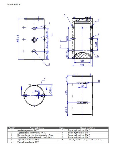 OZEME OPTIBUFOR 80 BUFOR CO EMALIOWANY PREMIUM 80 Ltr + 4 KOTWY MONTAŻOWE