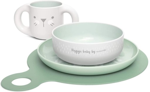 Zawiera: matę, talerz, miskę, kubek i łyżkę.