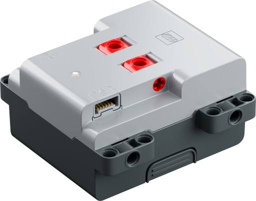 - Ma 2 porty wyjściowe do podłączania silników i lampek Powered Up