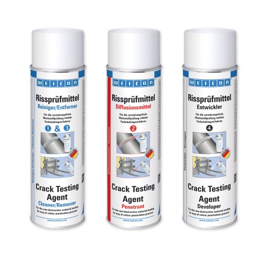 ZASTOSOWANIE - WEICON Crack Testing Agent Developer współpracuje z WEICON Crack Testing Agent Cleaner i Crack Testing Agent Penetrant i stanowi pierwszy etap aplikacji w wykrywaniu nieszczelności.