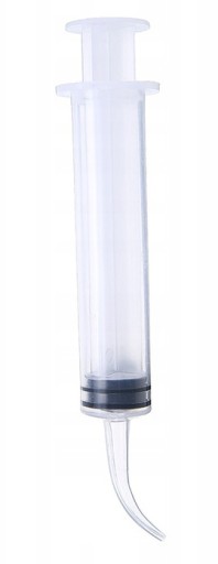 1️⃣Strzykawka z zakrzywioną końcówka- długość strzykawki ok. 13 cm