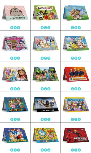 - Dzięki dużej ilości wzorów, na pewno znajdziesz zaproszenie z ulubieńcami swojej pociechy.