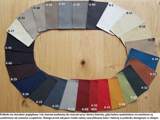 Kolorystyka do wyboru próbniki skór i drewna do zobaczenia w galerii zdjęć.