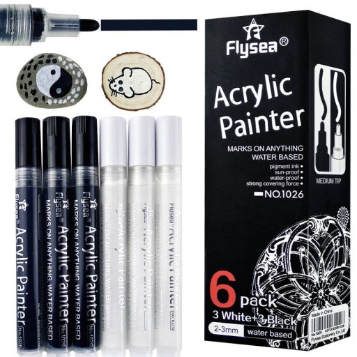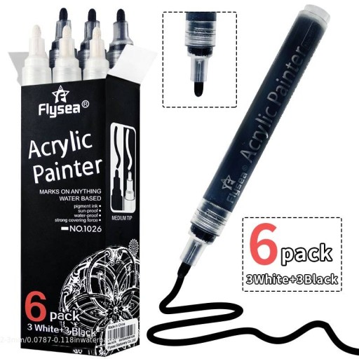 6 ЧЕРНЫХ И БЕЛЫХ АКРИЛОВЫХ МАРКЕРОВ, ВОДОНЕПРОНИЦАЕМЫЕ МАРКЕРЫ, МЕТКИ ДЛЯ КАМНЯ