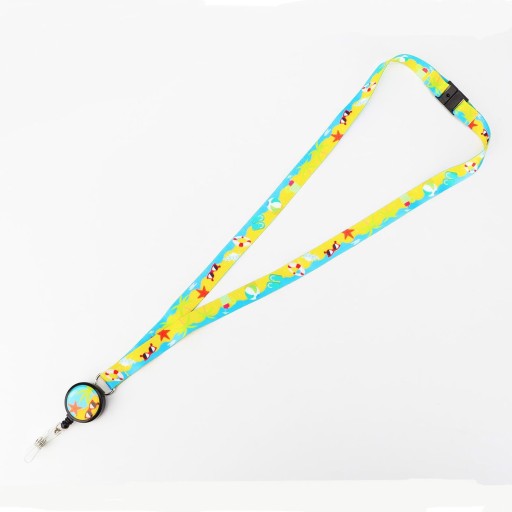 ① Smycz z wysuwanym kołowrotkiem identyfikatora, klamra bezpieczeństwa, identyfikator dostępu, uchwyt na karty obecności, artystyczny design (plaża)