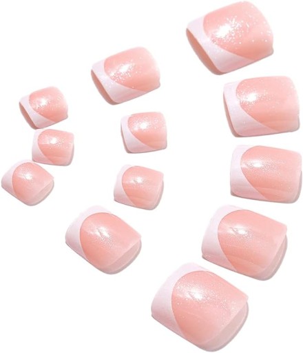 ✔️ Tipsy gotowe w kształcie kwadratu. Naklejane paznokcie żelowe. Doklejane paznokcie french. Doczepiane paznokcie brokatowe. Piękne delikatne paznokcie.