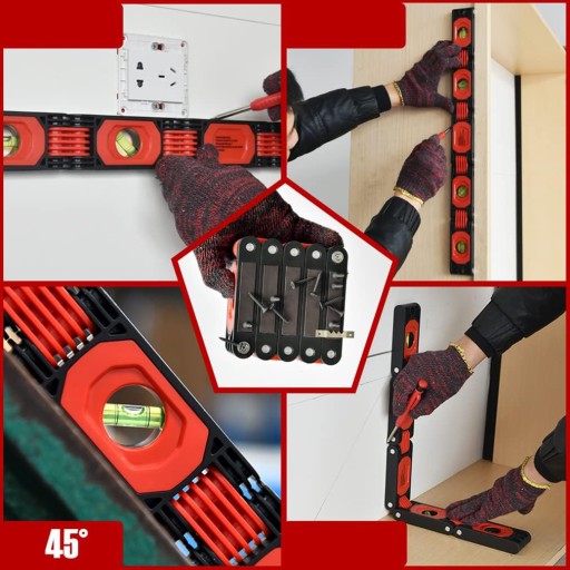 NARZĘDZIE DO POMIARU WIELU KĄTÓW KONSTRUKCJA MAGNETYCZNA POŁĄCZENIE PRZEGUBOWE SKŁADANA DO OBRÓBKI DREWNA SKŁADANA POZIOMICA Z MAGNETYCZNĄ LINIJKĄ RÓWNOWAŻĄCĄ - CZARNO-CZERWONA