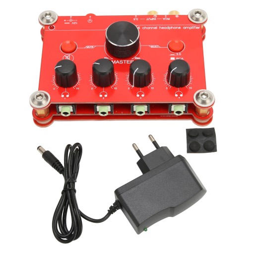 4 kanałowy czerwony wzmacniacz słuchawkowy