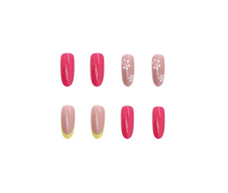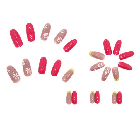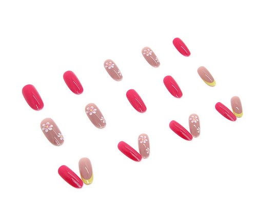 PAZNOKCIE SZTUCZNE TIPSY OWAL KOLOROWY FRENCH NUDE KWIATKI SAMOPRZYLEPNE