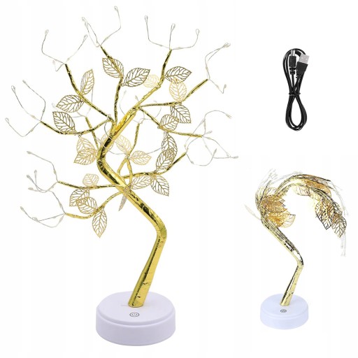 LAMPKA NOCNA LED ZE ZŁOTYMI LIŚĆMI CIEPŁA BIAŁA Z PRZEŁĄCZNIKIEM DOTYKOWYM