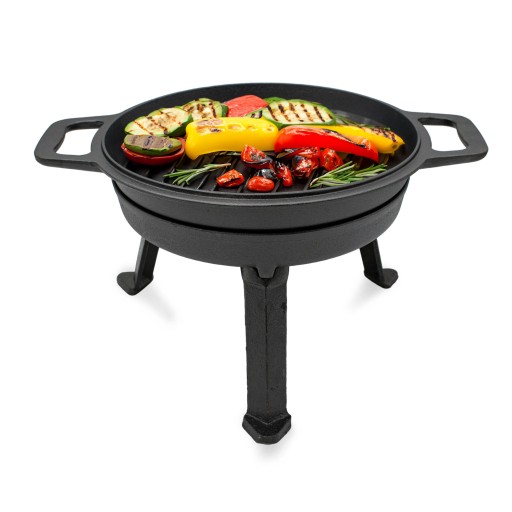 Oryginalny kociołek Meyerhoff wykonany z najwyższej jakości stopu żeliwa odpornego na najwyższe temperatury. Kociołek posiada wygodne uchwyty ułatwiające przenoszenie garnka i pokrywy. Jedyny w swoim rodzaju zestaw do prażenia ziemniaków, czy innych potraw składa się z trzech części. Nóżek w formie podstawki, garnka oraz pokrywy pełniącej jednocześnie funkcję żeliwnego grilla. Dzięki wytłoczeniu na pokrywie masz pewność, że kupujesz oryginalny i bezpieczny produkt.