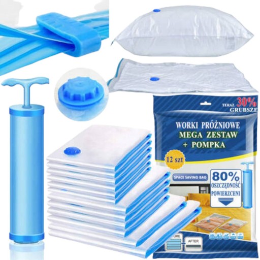 WORKI PRÓŻNIOWE NA UBRANIA POŚCIEL WOREK PRÓŻNIOWY 4 ROZMIARY 12SZT +POMPKA