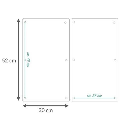 Wykonane z wysokiej jakości, hartowanego szkła płyty ochronne są przeznaczone do przykrywania szklanych płyt kuchenek. Chronią przed zabrudzeniami, uszkodzeniami i osiadaniem kurzu. Ciekawy marmurowy motyw. Są bardzo wytrzymałe, odporne na uderzenia i zarysowania. Idealne jako dodatkowy blat, do krojenia, siekania, wyrabiania i wałkowania ciasta. Stanowią piękną ozdobę każdego wnętrza kuchennego. Podczas gotowania mogą służyć jako podstawki pod garnki, patelnie lub czajnik, a oparte o ścianę uchronią ją przed zachlapaniem. Dołączone stopki umożliwiają zachowanie odpowiedniego odstępu od płyty grzejnej lub blatu. Spełniają wszystkie wymogi UE w zakresie jakości i bezpieczeństwa. W zestawie dwie płyty, wymiary jednej płyty: 52 x 30 x 0,5 cm.