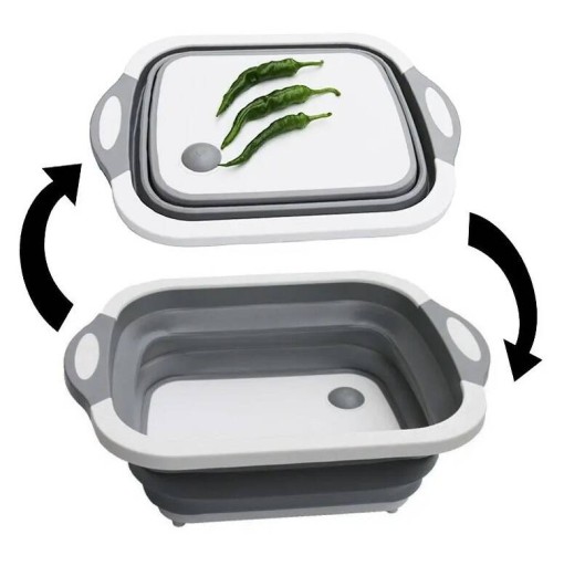 SKŁADANA MISKA SILIKONOWA DESKA DO KROJENIA OCIEKACZ PRZENOŚNA 3w1 ODPŁYW