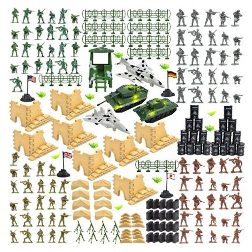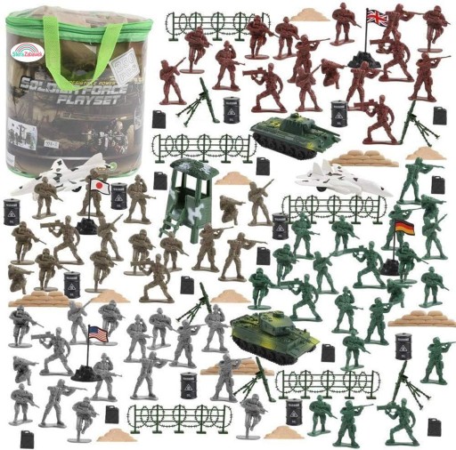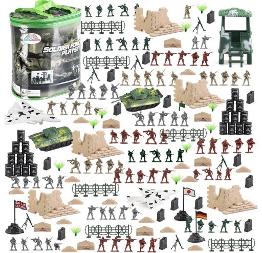 Wciągająca scena bitwy: Zestaw żołnierzyków to pełen ekscytacji i akcji zestaw figurek wojennych i sprzętu bojowego. W skład zestawu wchodzi aż 120 żołnierzy w 4 różnych kolorach, czołgi, wydajność, samoloty, płoty, flagi, artyleria i namioty wojskowe, które pomogą Twojemu dziecku stworzyć epicką bitwę.