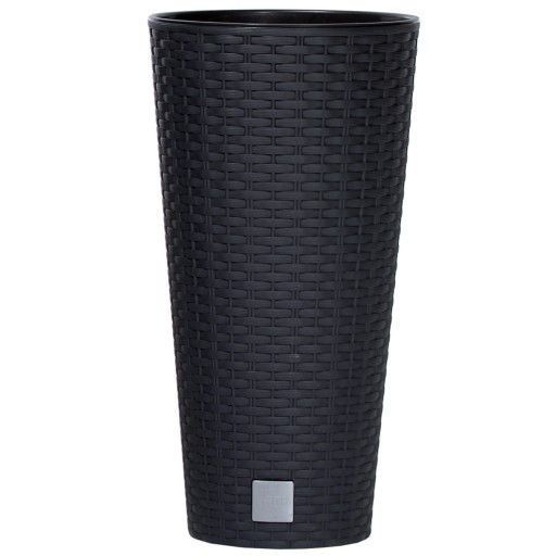 Wysoka, smukła doniczka z kolekcji Rato o fakturze przypominającej plecionkę z naturalnego rattanu.