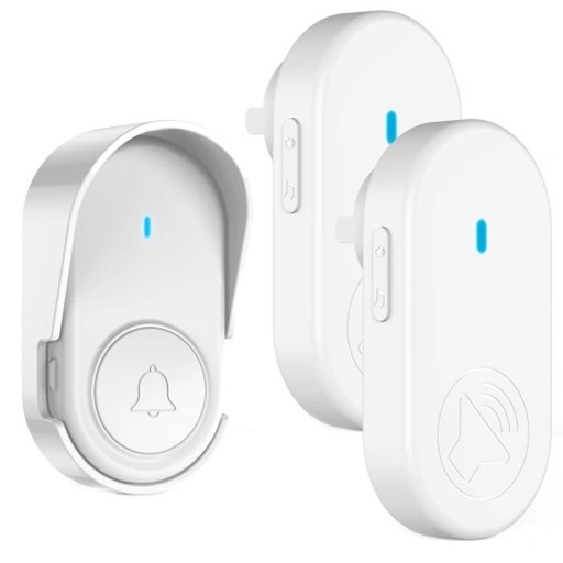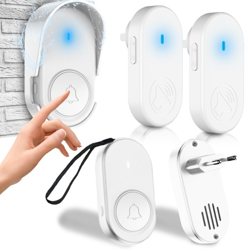 - 2 odbiorniki: Zestaw zawiera 2 odbiorniki, które możesz umieścić w różnych miejscach w domu, np. w salonie, sypialni lub kuchni. Dzięki temu zawsze usłyszysz dzwonek, bez względu na to, gdzie jesteś.