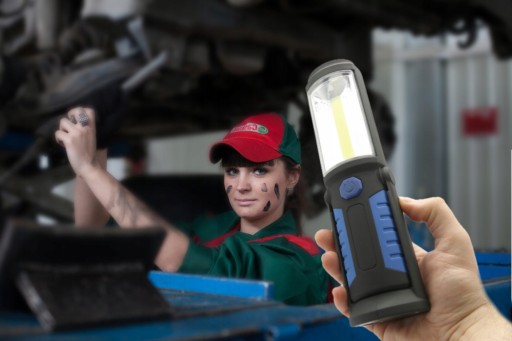 ➡️ Przenośna latarka do warsztatu z magnesem i haczykiem wyposażona w diody led i COB obrotowa lampka AG121C.