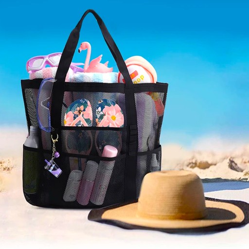 - Wykonana z wytrzymałej siatki nylonowej, torba jest oddychająca i odporna na pleśń, dzięki czemu idealnie nadaje się do przechowywania mokrych strojów kąpielowych i ręczników. Siateczkowa konstrukcja pozwala również na łatwe odprowadzanie piasku, dzięki czemu torba jest zawsze czysta i schludna.