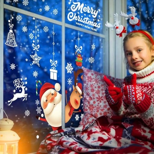 - Dekoracja wielosceniczna: te naklejki na okna można ozdobić na zjazdy rodzinne, sklepy, biura, kawiarnie, szkoły, restauracje itp., aby stworzyć świąteczną atmosferę. Naklejki świąteczne na okna nadają się na każdą czystą, płaską i gładką powierzchnię, taką jak okna, drzwi, płytki, lodówki, szkło, lustra itp.