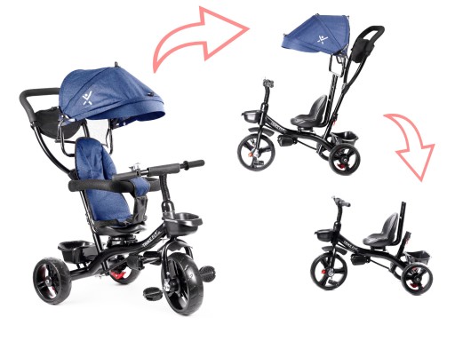 Składane podnóżki oraz pas i poręcz bezpieczeństwa sprawdzą sie w użytkowaniu pojazdu przez mniejsze dzieci. Gdy maluch podrośnie oraz zacznie sięgać nogami do pedałów, wówczas podnóżki i poręcz można zdemontować. Posiada obracane o 360 stopni siedzisko, dzięki któremu rodzic będzie miał kontrolę nad maluchem na początku korzystania z pojazdu. Siedzisko można ustawić w taki sposób aby móc patrzeć na malucha lub obrócić aby Twoja pociecha mogła obserwować świat.