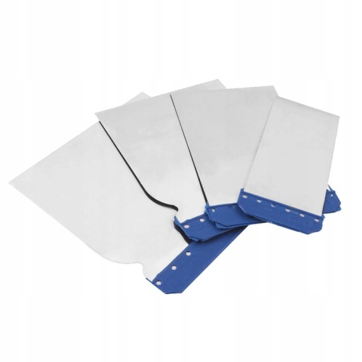 - Wygodny kształt szpachelek ze zwężającym się do minimalnej możliwej grubości płaszczyzny pozwala na naniesienie równomiernej i bardzo cienkiej warstwy szpachlówki.