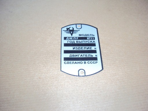 DO MOTOCYKLI ; DNIEPR MT 11 - NOWA FABRYCZNIE , ALUMINIOWA , TABLICZKA ZNAMIONOWA RAMY MOTOCYKLA . CENA DOTYCZY 1 SZT .