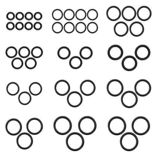 ✏️W zestawie znajduje się 50 szt. gumowych oringów w 12 popularnych rozmiarach. Zapakowane w plastikowe opakowanie posiadające przegrody na każdy rozmiar osobno.