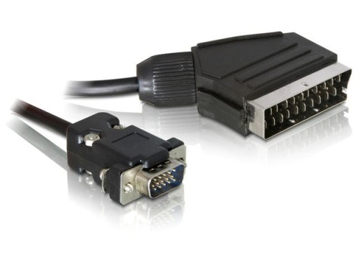 Ten przewód Scart na VGA firmy Delock służy do podłączania urządzeń wyposażonych w gniazdo VGA, np. monitorów lub projektorów do dowolnego urządzenia wyposażonego w gniazdo Scart, np. odtwarzacza DVD lub nagrywarki wideo. Sygnał może być przesyłany jedynie z urządzenia Scart do urządzenia VGA.