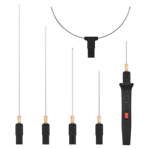 Zestaw zawiera rękojeść główną, 5 końcówek o różnej długości, końcówkę łukową, zwój drutu grzejnego oraz zasilacz (do wyboru stała lub regulowana temperatura), spełniający różne potrzeby.
