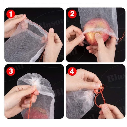 Ogrodowa torba z siatki wykonana jest z wysokiej jakości materiału nylonowego, który jest bezpieczny, nietoksyczny, mocny, odporny na zużycie, trwały i nadaje się do wielokrotnego użytku, a także ma sznurek ułatwiający użytkowanie. Lekki, miękki materiał z siatkową konstrukcją zapewniającą wentylację bez blokowania światła słonecznego i wody dla roślin. Worki barierowe nie wpływają na fotosyntezę i nie szkodzą roślinom.