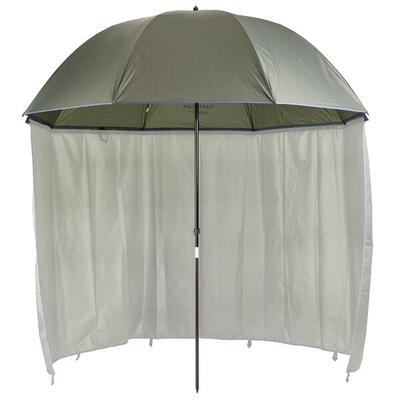 Parasol zaprojektowany do ochrony wędkarza przed deszczem podczas sesji wędkarskiej. Końcówka sztycy umożliwia wbicie parasola w ziemię. Pokrowiec ułatwia transport.