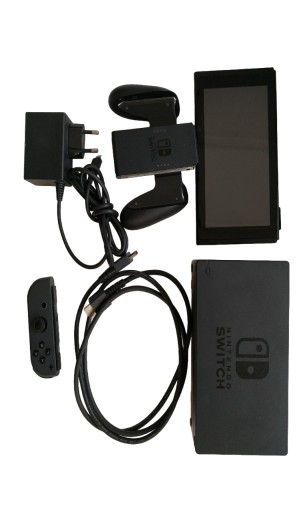 - Nie ładuje się, nie włącza się, była rozkręcana - odstaje tylna obudowa, brak śrubki. Brak informacji o stanie podzespołów. Wyłamana nóżka - brak. Widoczne zarysowania, przetarcia, zabrudzenia. Brak lewego joy cona, nieznany stan prawego. Stacja podświetla się po podłączeniu. Adapter do joy conów nie był sprawdzany. Brak instrukcji