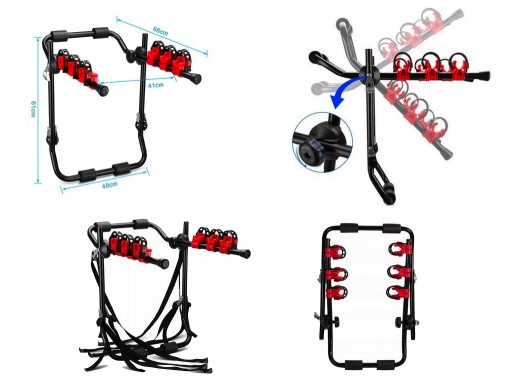 - Wymiary i pojemność: bagażnik rowerowy na tylną klapę ma wymiary 73 x 10 x 48 cm i waży 4 kg. Może transportować do 3 rowerów o maksymalnej nośności 40 kg