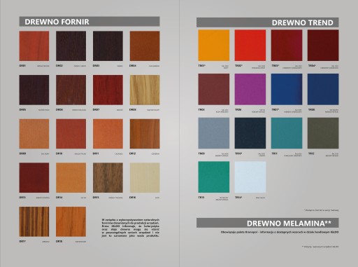 - panel frontowy drewniany z płyty fornirowanej lub TREND - możliwość wyboru koloru (wzornik IGLOO)