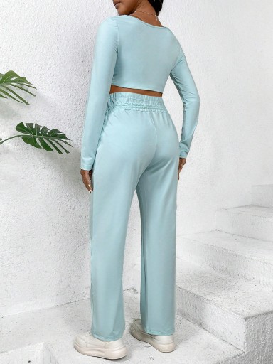 СИНИЙ КОМПЛЕКТ ДЛЯ МАТЕРИАЛОВ, ТОП, ДЛИННЫЕ БРЮКИ НА РЕЗИНКЕ, SHEIN 36