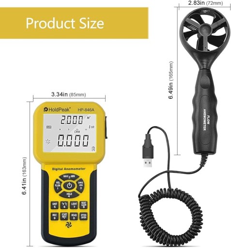 - ★ 【Wysoka dokładność】 Dokładność prędkości wiatru: 0,1 m / s, zakres: 0,3 m / s ~ 45 m / s. Zakres temperatur: 32 °F ~ 113 °F. Możesz wybrać między °F lub °C, mierząc prędkość wiatru w 5 jednostkach: m/s, km/h, ft/min, węzły, MPH.