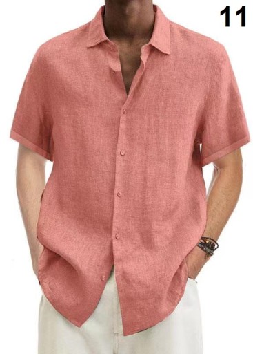 Męska poliestrowa koszula lniana z krótkim rękawem Casualowa stójka Solidna koszulka plażowa