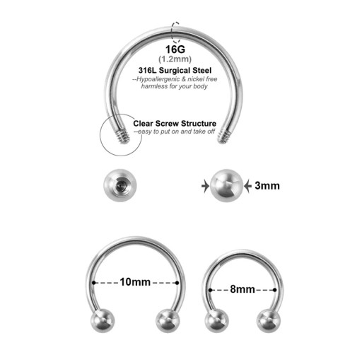 Пирсинг неокисляемый для носовой губы, вокруг носа, круговой для эль