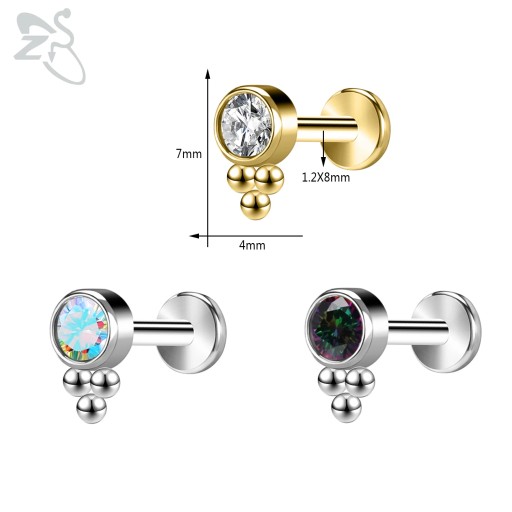 ZS-Пирсинг Лабрет де Асеро неокисляемый Цвет дорадо, бола де кристал пара