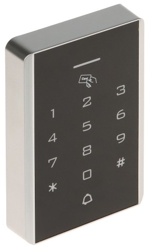 Wewnętrzny, autonomiczny zamek szyfrowy z czytnikiem RFID; Obsługa kart: 13.56 MHz S50 ; Zasięg odczytu kart: 1 . 3 cm ; Wbudowana klawiatura; Komunikacja: Wiegand 26, Wiegand 34 ; Przycisk dzwonka; Wybrane cechy: Liczba wyjść przekaźnikowych : 1, 2000 zaindeksowanych użytkowników, ; Obudowa: Tworzywo samogasnące ABS ;