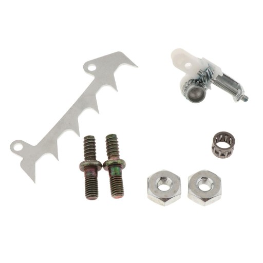 Pakiet zawiera: 1 osłonę zębatki, 1 zderzak, 2 kołki i nakrętki osłony zębatki, 1 napinacz łańcucha, 1 koszyk łożyska zębatki