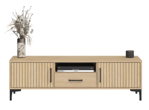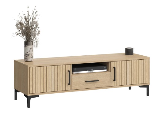 Nowoczesna i elegancka COMO jest praktycznym meblem, który jest świetną propozycją do salonu. Będzie doskonałą ozdobą wnętrz salonów urządzonych w stylu industrialnym lub loft. Szafka jest wyposażona w dwie drzwiczki które tworzą wygodną przestrzeń do przechowywania. Mechanizm cichego i delikatnego zamykania gwarantuje jakość i komfort.