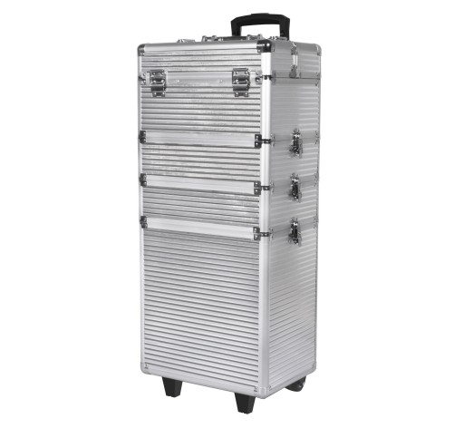 Kuferek podzielony został na 4 części: 1 dużą i bardzo pojemną komorę dolną, 2 równej wielkości komory, oraz górną część, która posiada pojemną komorę z rozsuwanymi szufladkami.