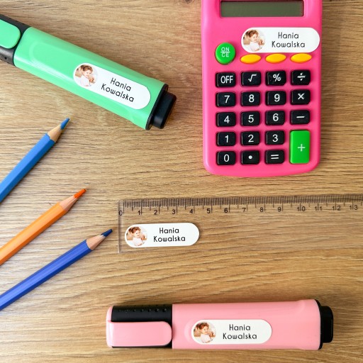 x58 Naklejki imienne ze zdjęciem dziecka Twoją grafiką szkoły przedszkola