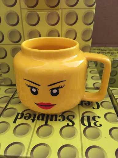 Ten żółty kubek mieści 250 ml napoju i ma nadruk z klasyczną, roześmianą głową minifigurki.
